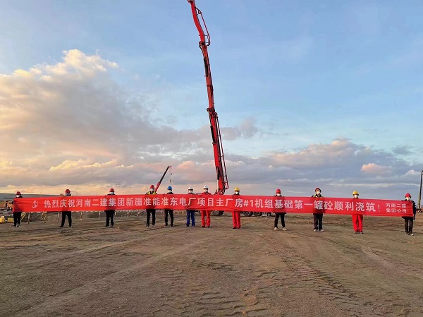 新疆准能准东2×660MW电厂项目C标段项目部顺利浇筑第一罐混凝土