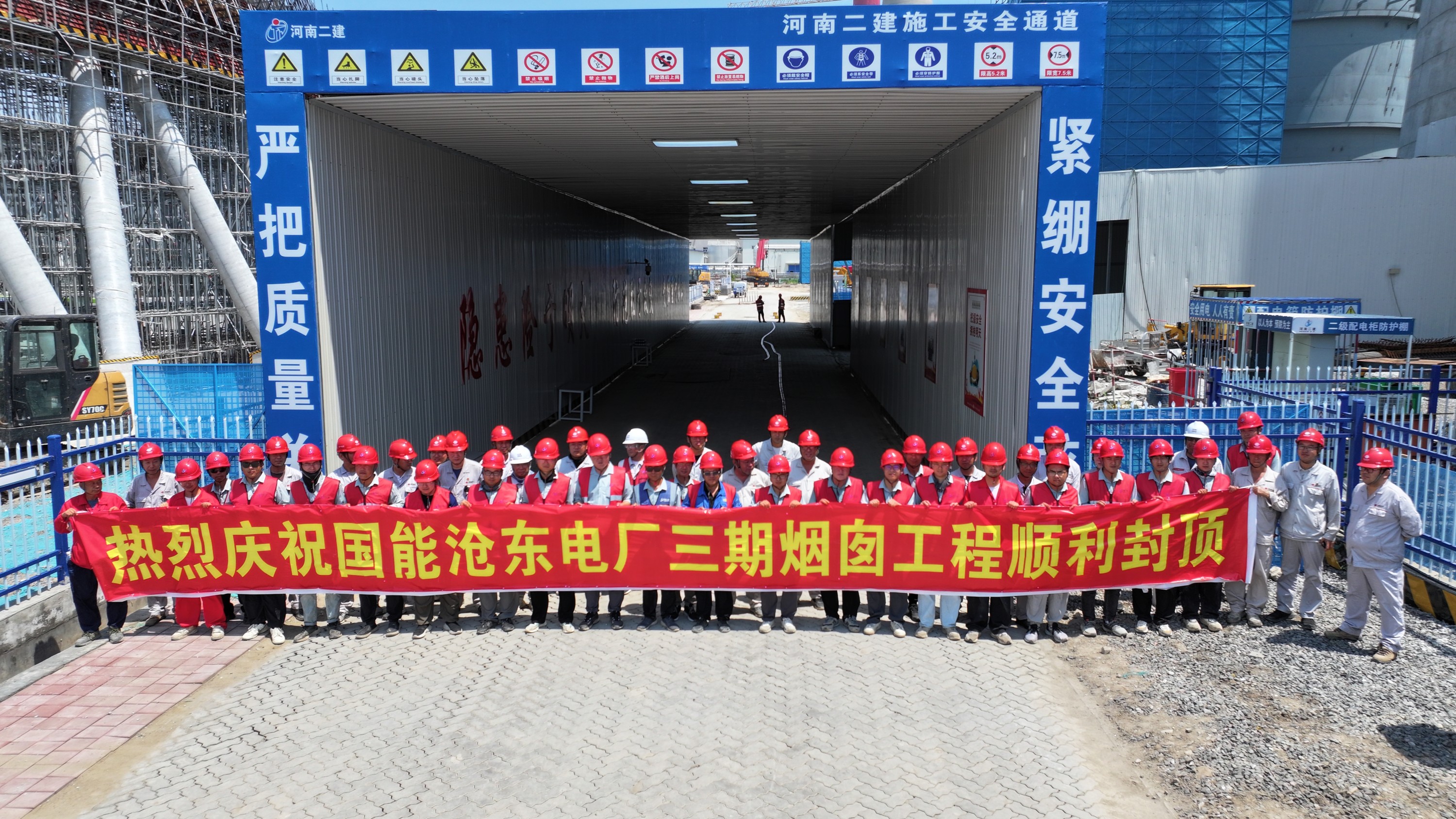 烟塔施工分公司国能河北沧东电厂三期项目烟囱外筒顺利封顶